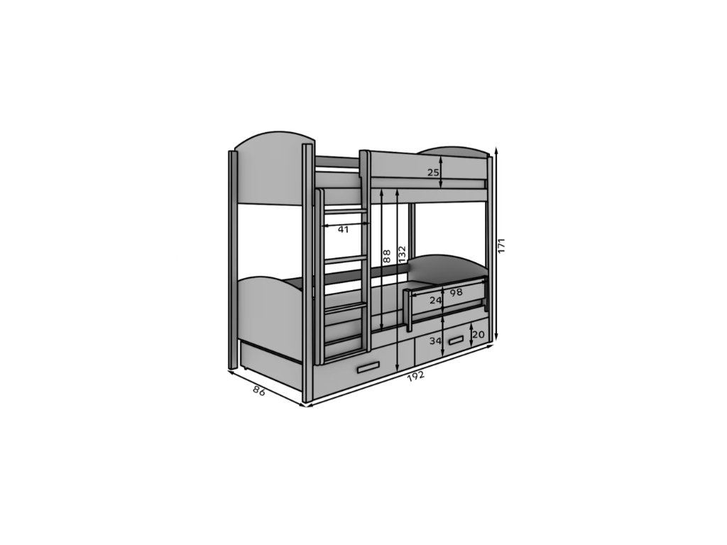 Pod spodným lôžkom sa nachádzajú dve priestranné zásuvky na kolieskach, ktoré poskytujú praktický úložný priestor na posteľnú bielizeň, hračky či oblečenie.