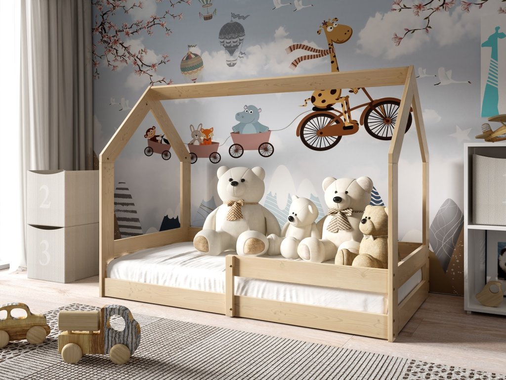 Detská domčeková posteľ Pola s otvoreným rámom a nízkou konštrukciou je ideálna pre menšie deti. Zábrany po celom obvode zabezpečujú bezpečný spánok a zároveň umožňujú ľahký prístup. Posteľ je dostupná v prírodnej, bielej a sivej farbe. Vďaka svojmu hravému dizajnu pôsobí útulne a je skvelým doplnkom detskej izby.