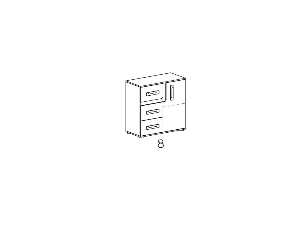 Apetito A8 je 1-dverová komoda s 3-zásuvkami vyrábaná v 3 farebných kombináciách z detského sektoru Apetito.