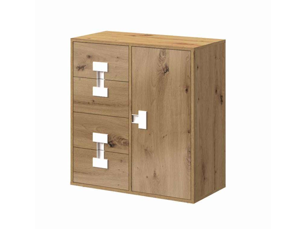 1-dverová komoda so 4 zásuvkami vyrábaná v 3 farebných prevedeniach zo sektorovej študentskej izby Index.