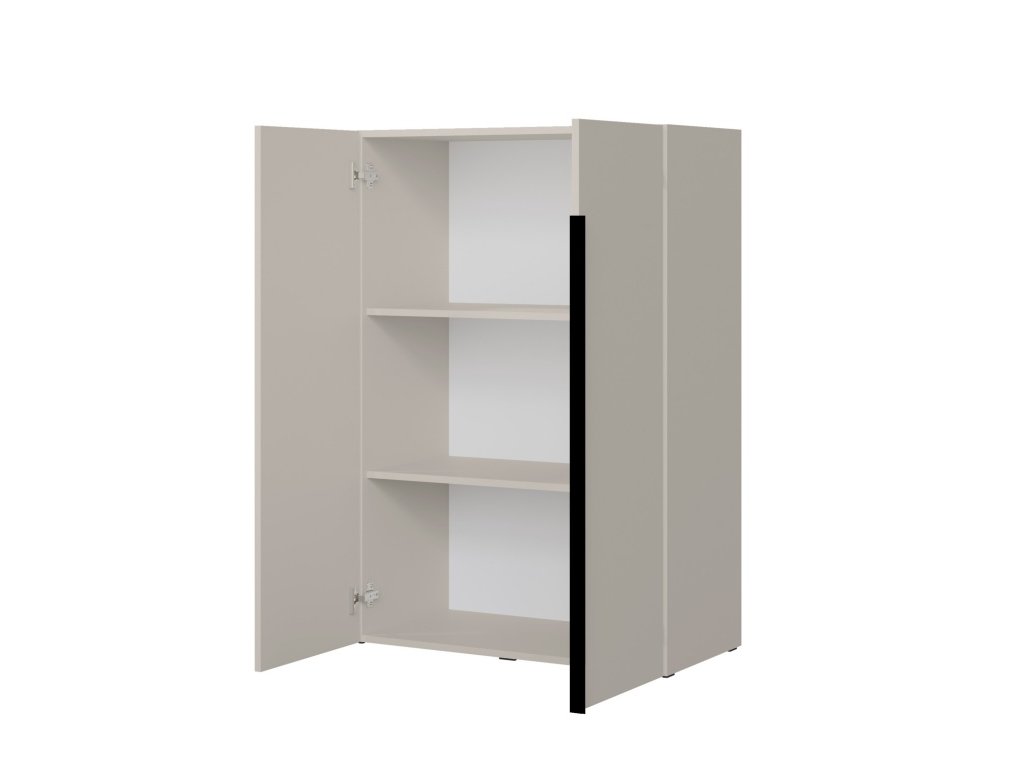 Štýlová komoda ponúka praktický úložný priestor v podobe dvoch políc ukrytých za čistým dvojdverovým dizajnom. Vďaka trom farebným prevedeniam sa ľahko prispôsobí rôznym interiérom.