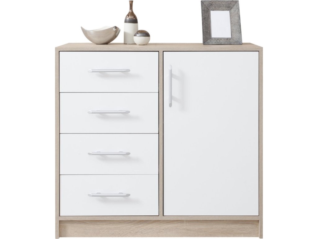 Komoda so štyrmi zásuvkami a skrinkou ponúka praktický úložný priestor v modernom dizajne zo sektoru SMART. Dostupná v 4 farebných prevedeniach.