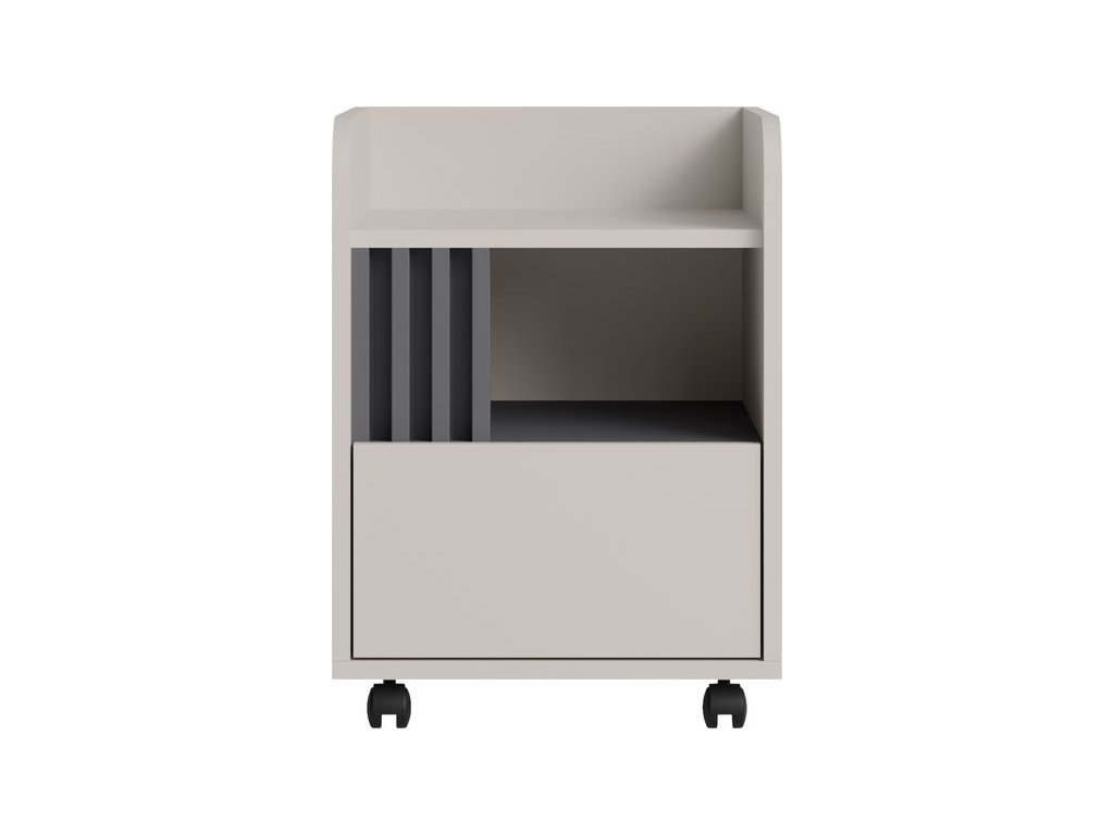 Praktický kontajner pod stôl s otvorenou policou, priehradkami na dokumenty a spodnou uzavretou zásuvkou. Vďaka kolieskam sa ľahko presúva a poskytuje prehľadný úložný priestor. Dostupný v 2 farebných prevedeniach.