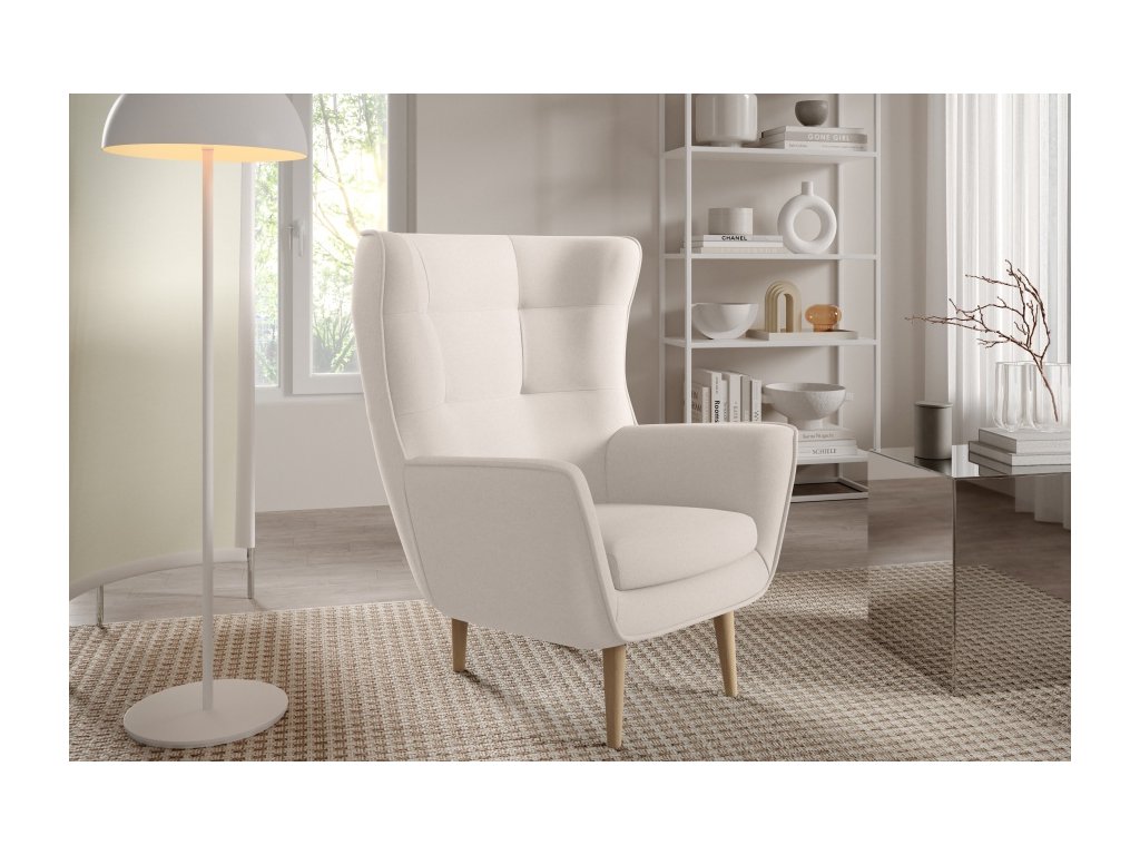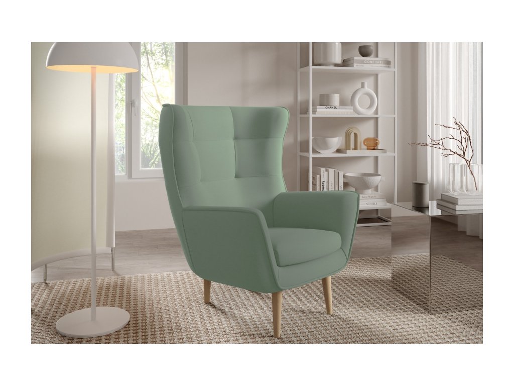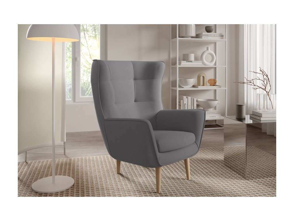 Dizajn dopĺňajú drevené nohy v troch farebných prevedeniach – prírodnom, bielom alebo čiernom. Široký výber poťahových látok a odtieňov umožňuje prispôsobiť kreslo presne podľa charakteru vášho domova, či už preferujete jemnú eleganciu alebo výraznejší štýl.