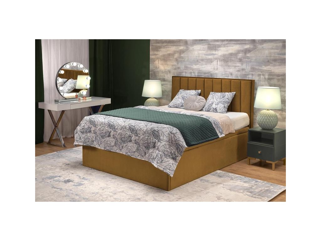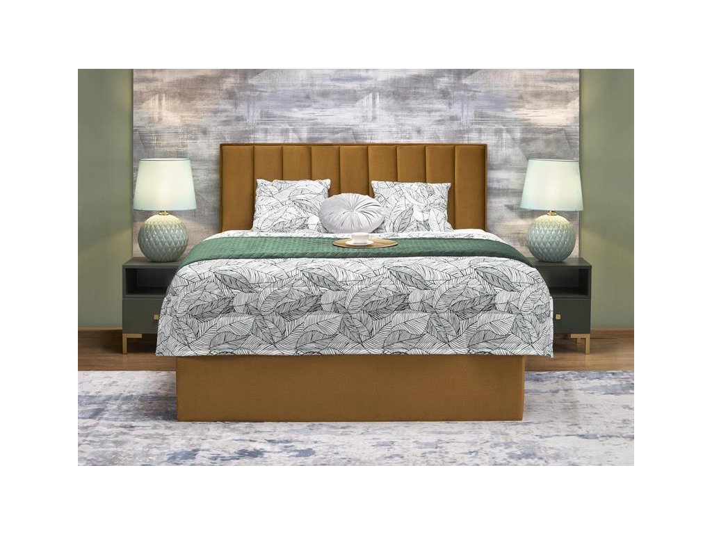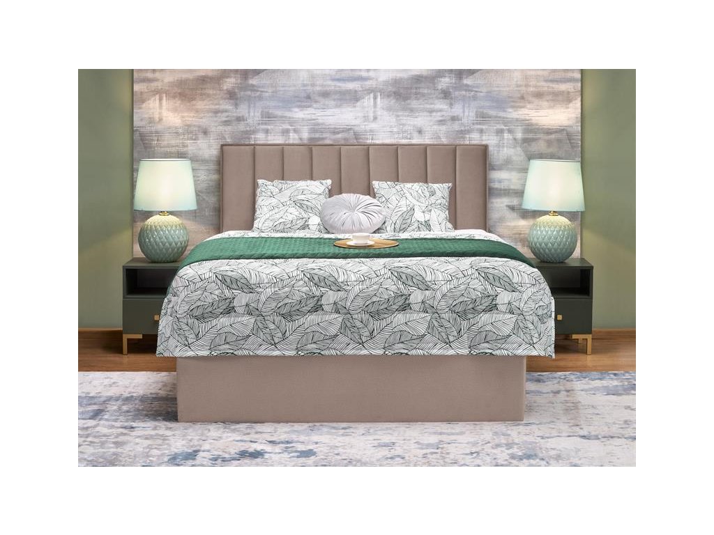 Elegantná manželská posteľ s vysokým čelom a praktickým úložným priestorom. Čalúnená kvalitnou látkou, vhodná do moderných interiérov. Ideálne spojenie štýlu a funkčnosti.