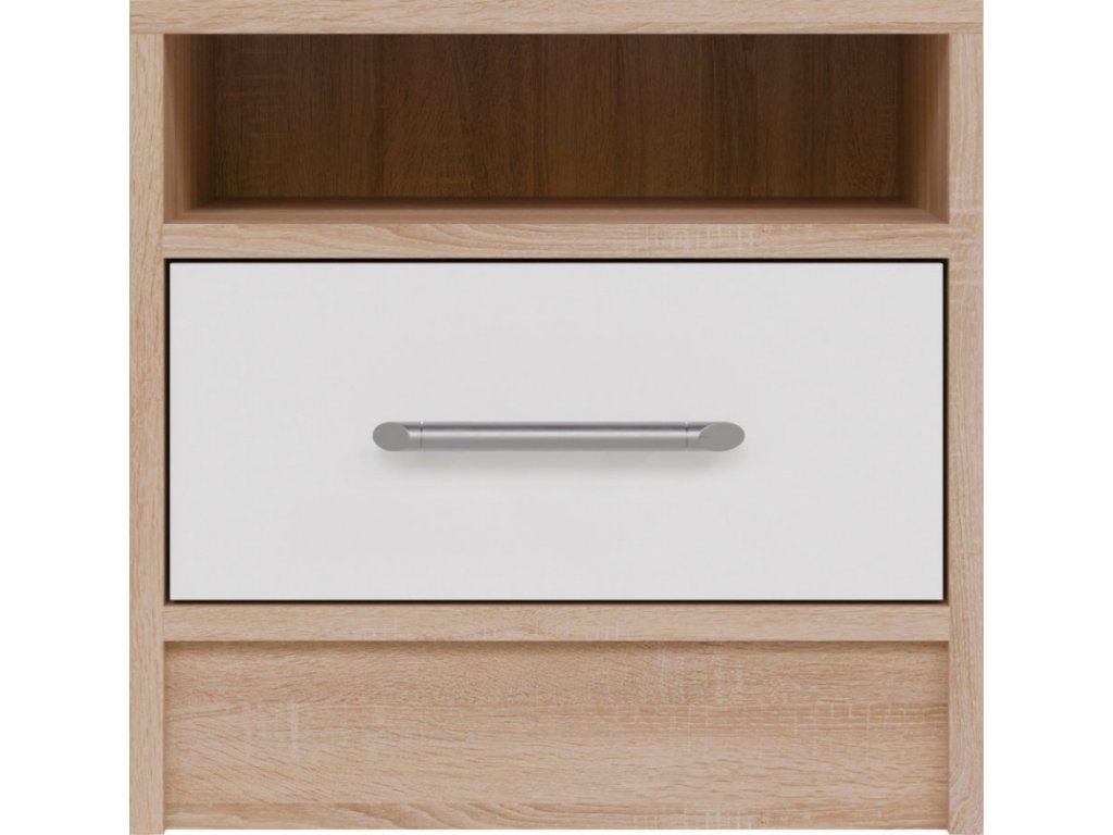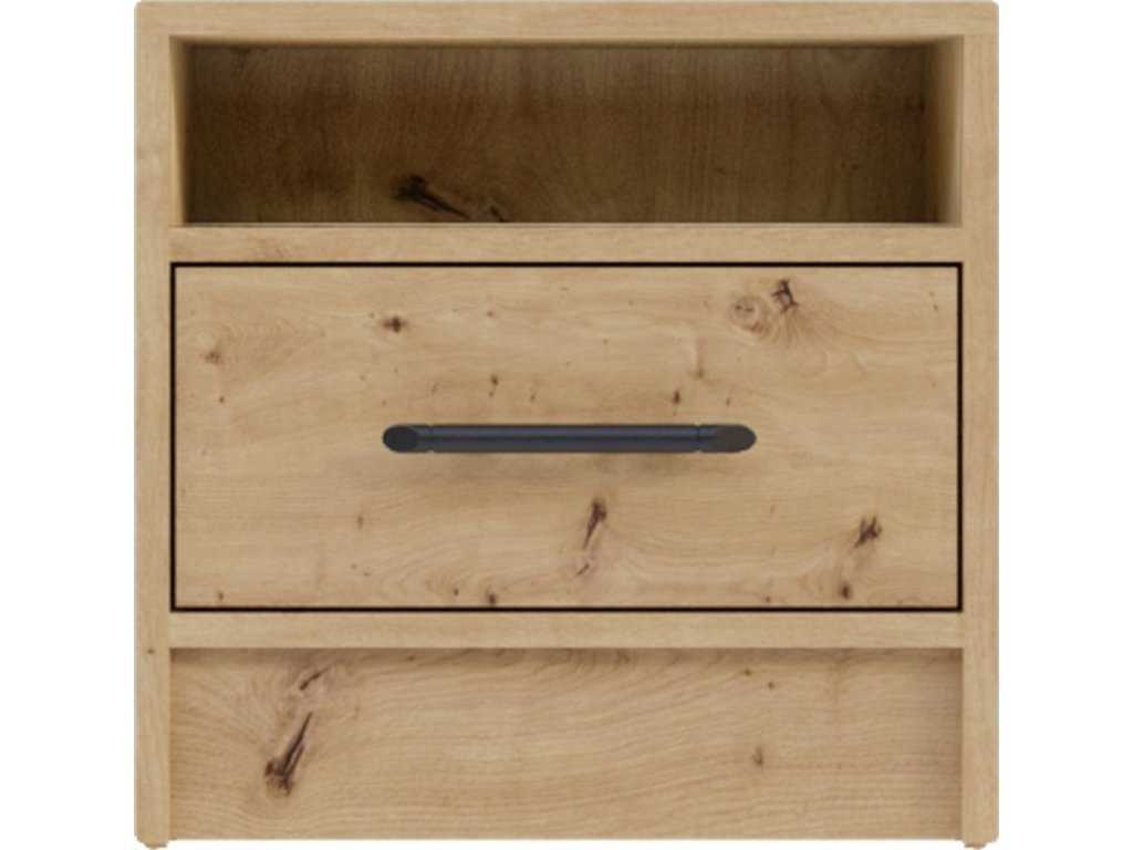 Nočný stolík Smart v modernom prevedení je praktickým doplnkom k posteli a zároveň štýlovým prvkom spálne. Kombinuje otvorenú poličku vhodnú na knihu či drobnosti s priestrannou zásuvkou, ktorá poskytuje miesto na uschovanie osobných vecí.