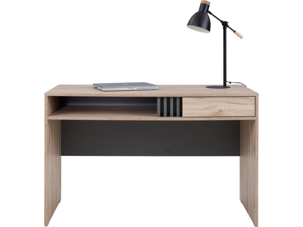 Moderný písací stolík ponúka praktické riešenie do pracovne, študentskej či detskej izby. Disponuje priestrannou pracovnou plochou, otvorenou policou na odkladanie dokumentov alebo techniky a zásuvkou na drobnosti.