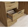 Na ľavej strane ponúka štyri priestranné zásuvky, ktoré poslúžia na prehľadné uloženie dokumentov, školských potrieb alebo drobností, ktoré potrebujete mať vždy poruke. Kovové úchytky a kvalitné pojazdy zaručujú ich pohodlné a tiché používanie. Pracovná doska stolíka je doplnená o praktický otvor na káble, vďaka ktorému bude váš pracovný kút vždy pôsobiť upratane a profesionálne.
