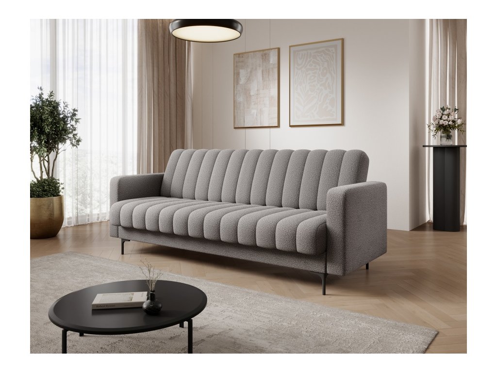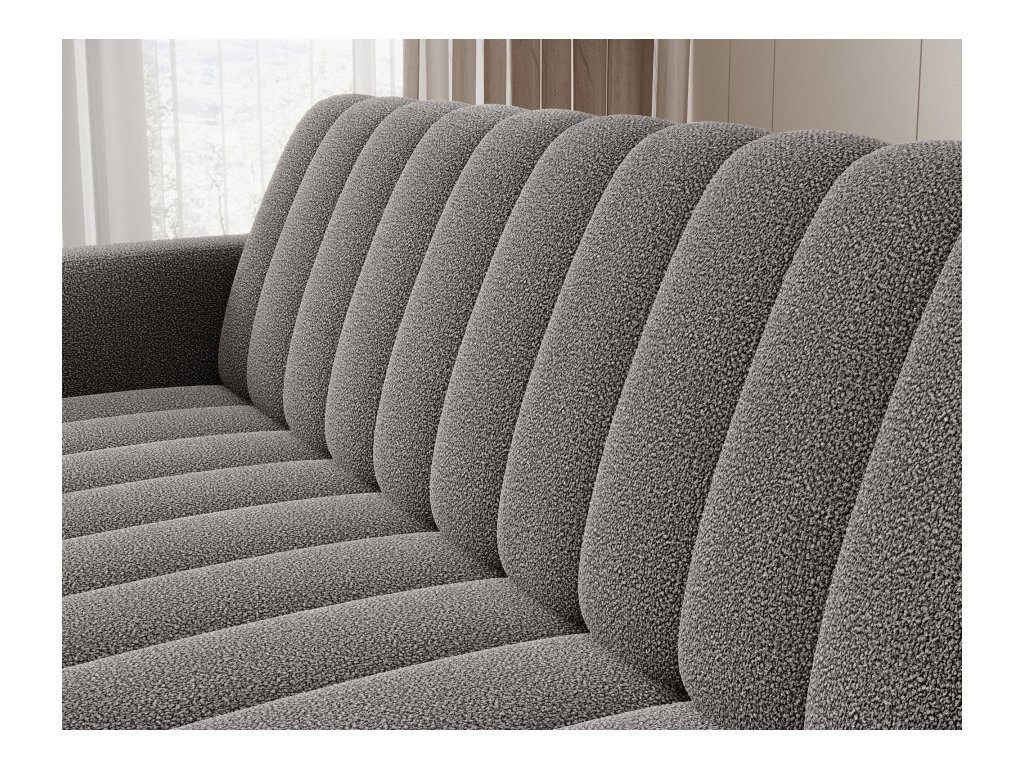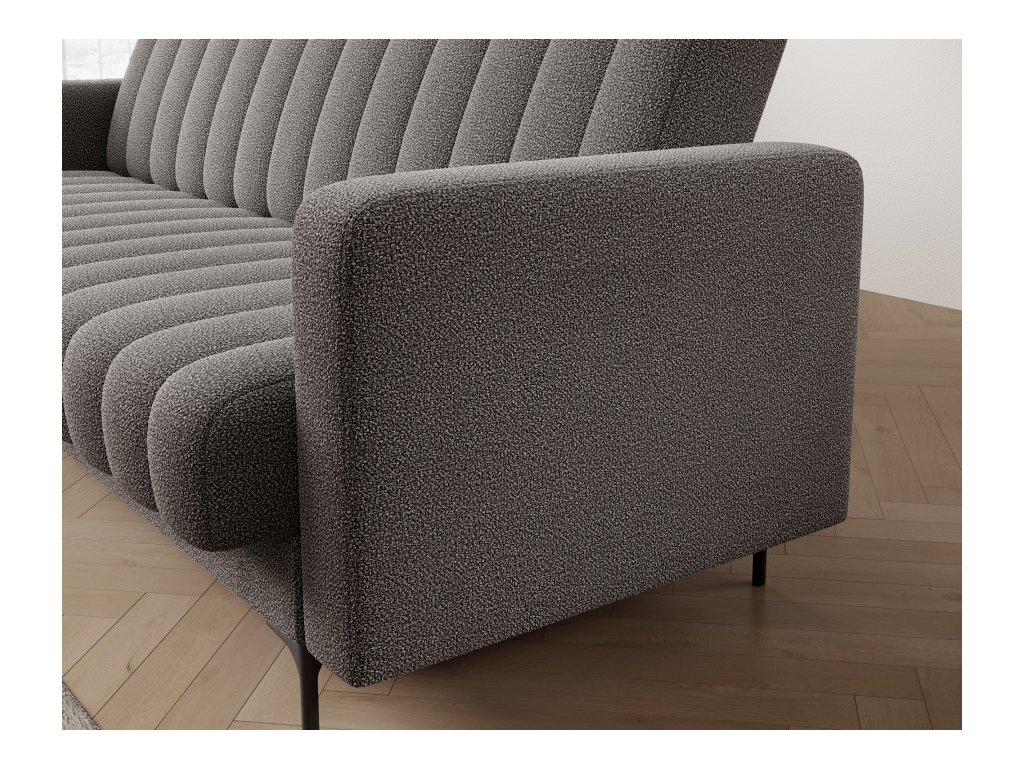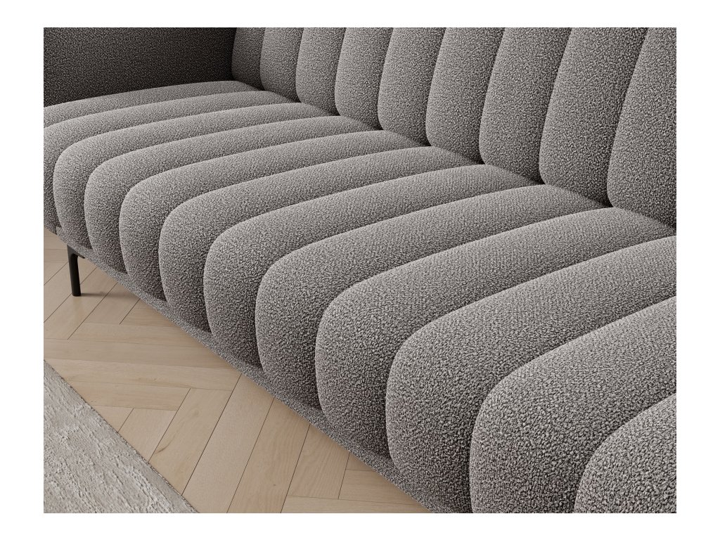 Pohovka Roneyy prináša do interiéru čistý moderný štýl spojený s pohodlím. Jej charakteristickým prvkom je vertikálne čalúnenie, ktoré vytvára elegantný rytmus a zvýrazňuje mäkkosť celej konštrukcie. Pôsobí kompaktným dojmom, no zároveň vďaka štíhlym čiernym kovovým nožičkám nepôsobí ťažkopádne.