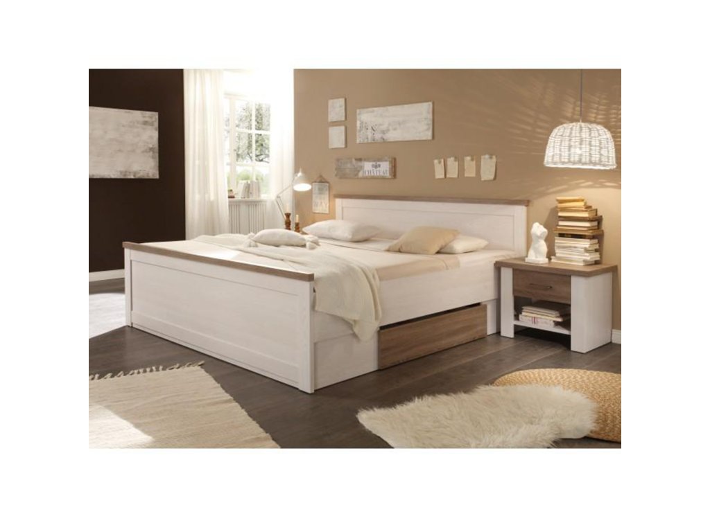 Posteľ + 2x nočný stolík, pínia biela/dub sonoma truflový, LUMERA