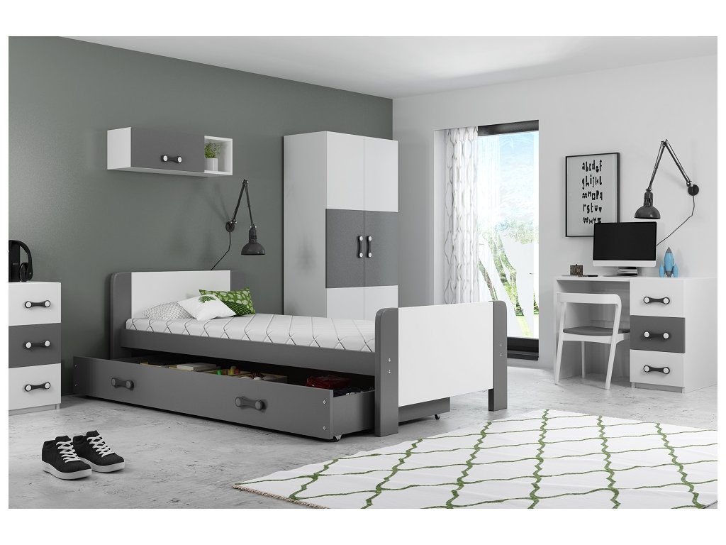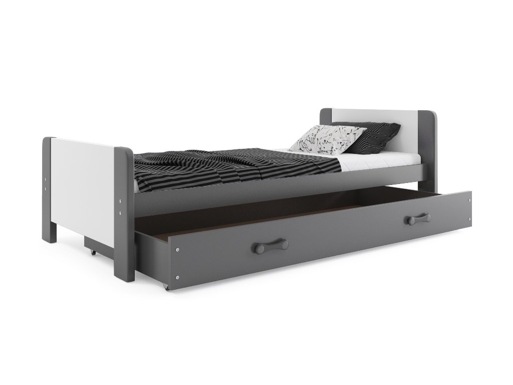 Detská jednolôžková posteľ s úložným priestorom. Posteľ je dodávaná spolu s lamelovým roštom a molitanovým matracom.
