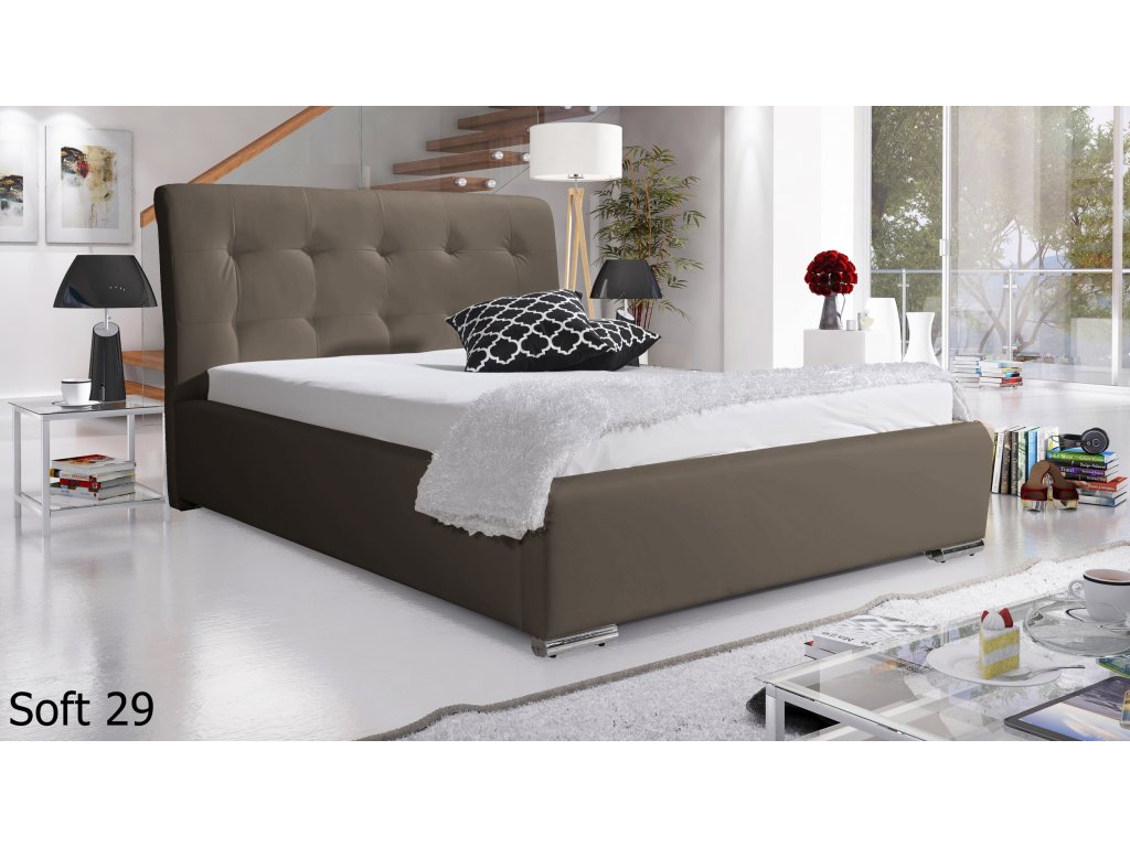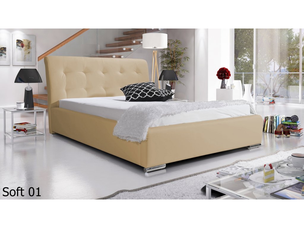 Čalúnená posteľ určená pre tých, ktorí oceňujú elegantný vzhľad nábytku a jeho využiteľnosť. Môžete si vybrať zo 4 rozmerov. Na výber máte množstvo poťahových látok, preto si túto posteľ viete doladiť v každom interiéri.