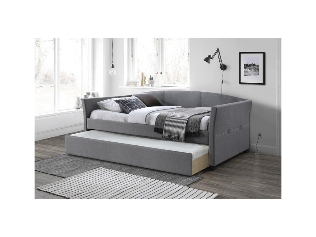 Štýlová rozkladacia posteľ v sivom čalúnení ponúka pohodlné spanie pre dvoch vďaka praktickému výsuvnému lôžku. Ideálna do detských a hosťovských izieb.