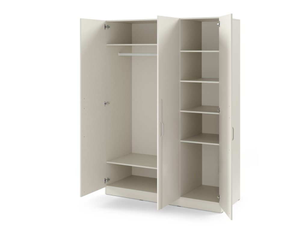 Moderná šatníková skriňa s čistým a nadčasovým dizajnom je praktickým riešením pre každodenné uloženie oblečenia. Vďaka jednoduchým líniám sa ľahko kombinuje s rôznymi štýlmi interiéru a je vhodná do spálne aj šatníka.
