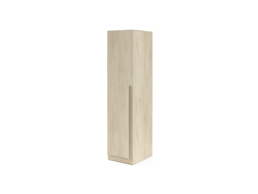 Elegantná úzka šatníková skriňa je ideálnym riešením do menších priestorov, predsiení, spální alebo ako doplnok k zostave skríň. Vyniká čistým, moderným dizajnom a praktickým spracovaním, vďaka ktorému sa ľahko prispôsobí rôznym interiérom.