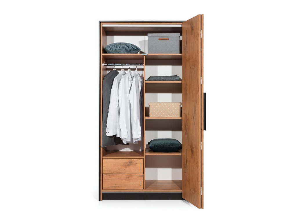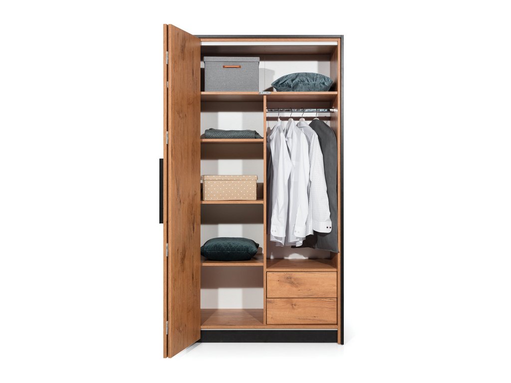 2-dverová kombinovaná skriňa s posuvnými dvermi vo farebnom prevedení dub lancelot + čierny kov zo spálňovej zostavy LOFT.