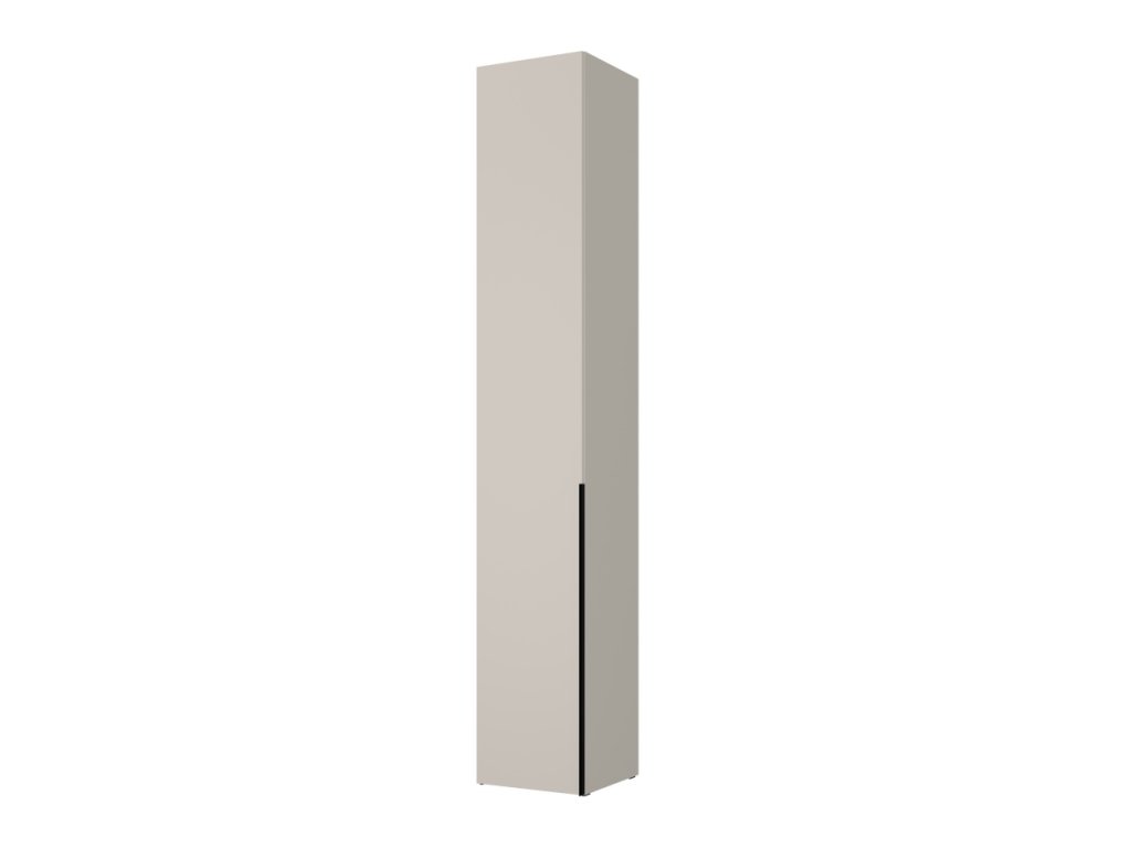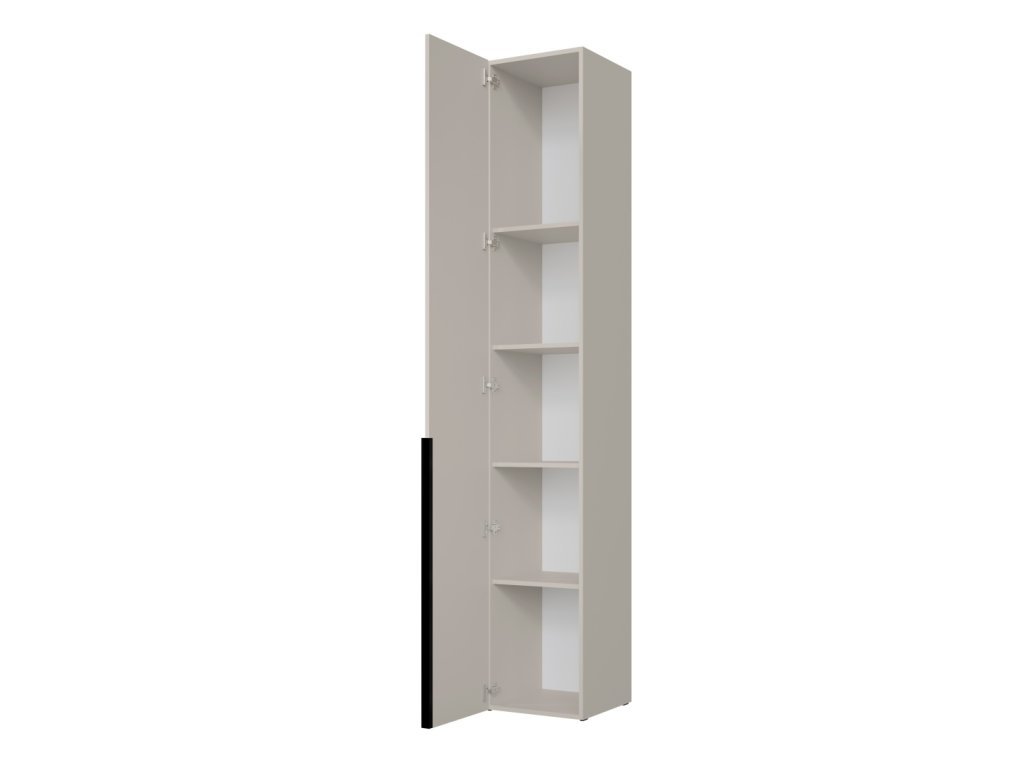 Skriňa S01 z kolekcie Slim je kompaktný a praktický doplnok do moderných interiérov, kde je dôležitý každý centimeter. Vďaka svojmu úzkemu tvaru a jednoduchému dizajnu pôsobí nenápadne, no zároveň štýlovo. Vo vnútri sa nachádzajú štyri police, ktoré poskytujú organizovaný úložný priestor na každodenné veci. Výrazný čierny vertikálny prvok na dvierkach slúži ako elegantný úchyt. Model je dostupný v troch farebných variantoch, čo umožňuje jednoduché zladenie s ostatným zariadením.