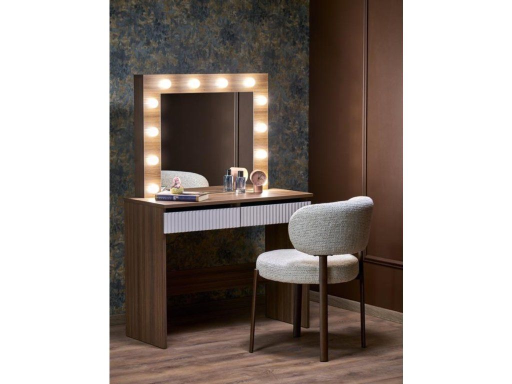 Toaletný stolík Hollywood je vybavený 2 zásuvkami a zrkadlom s LED osvetlením. Široká stolová doska Vám poskytne veľa pracovného priestoru na usporiadanie vecí.